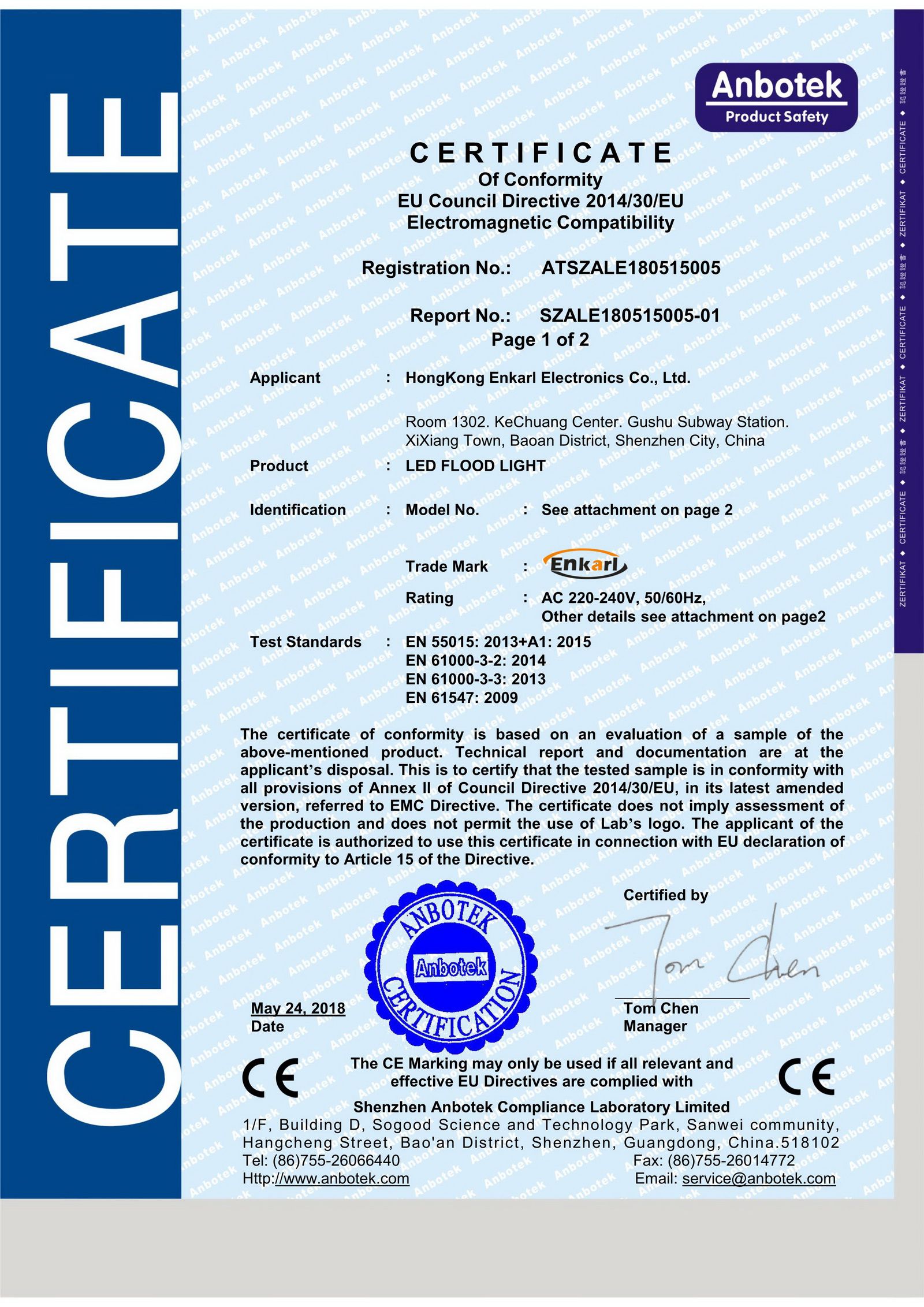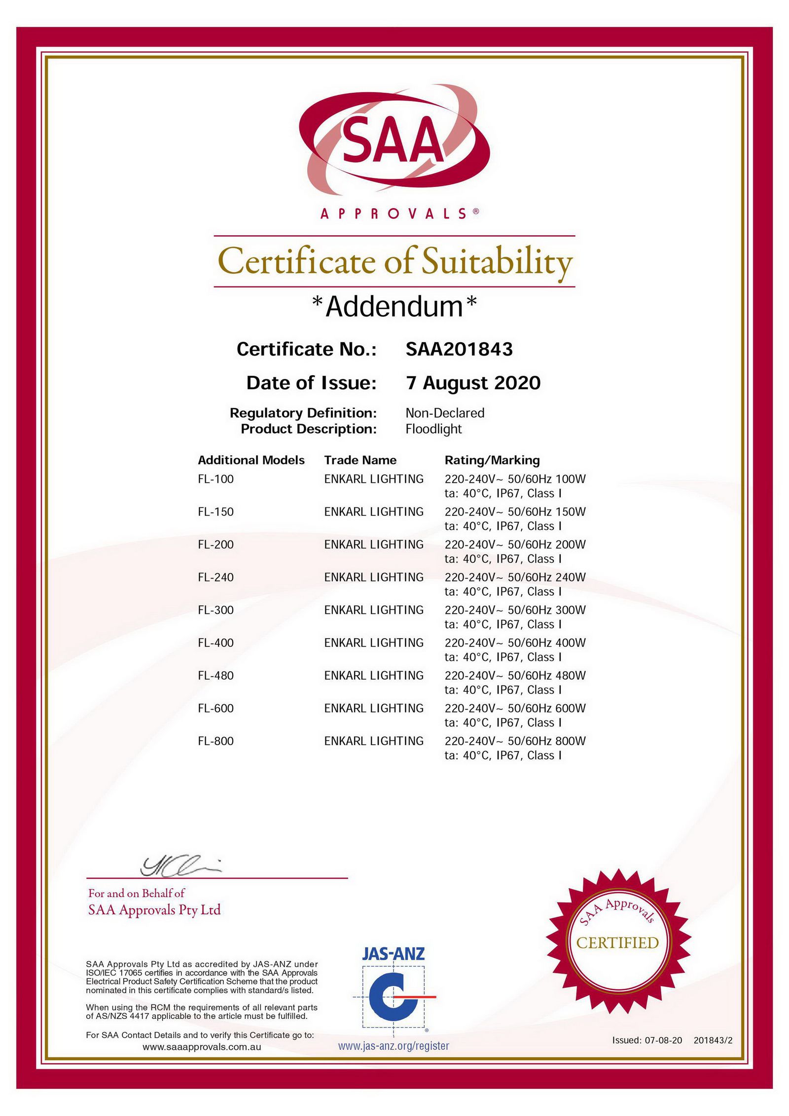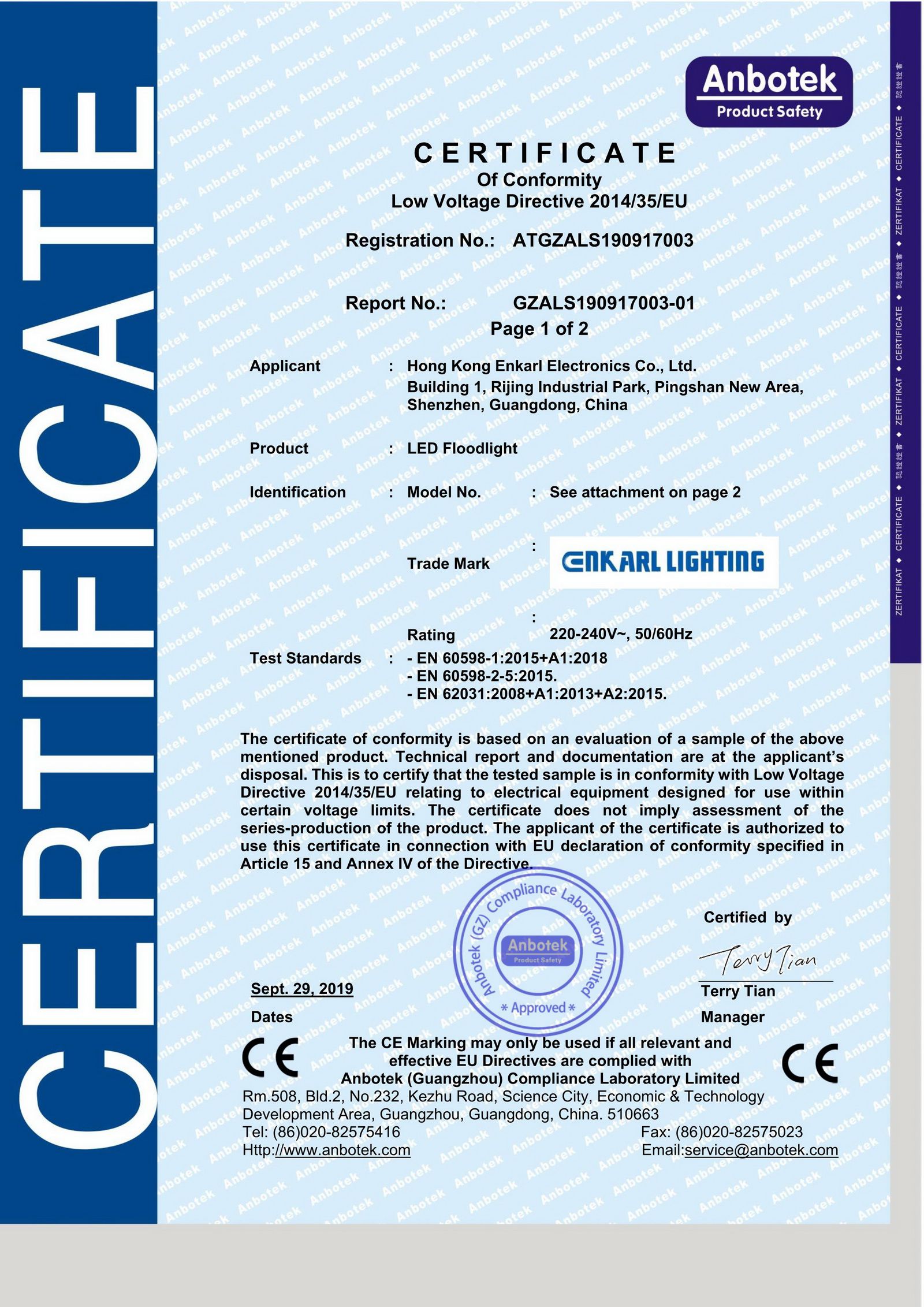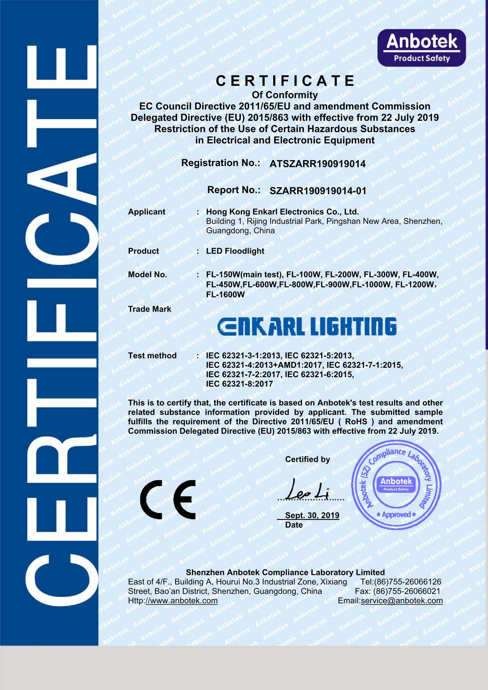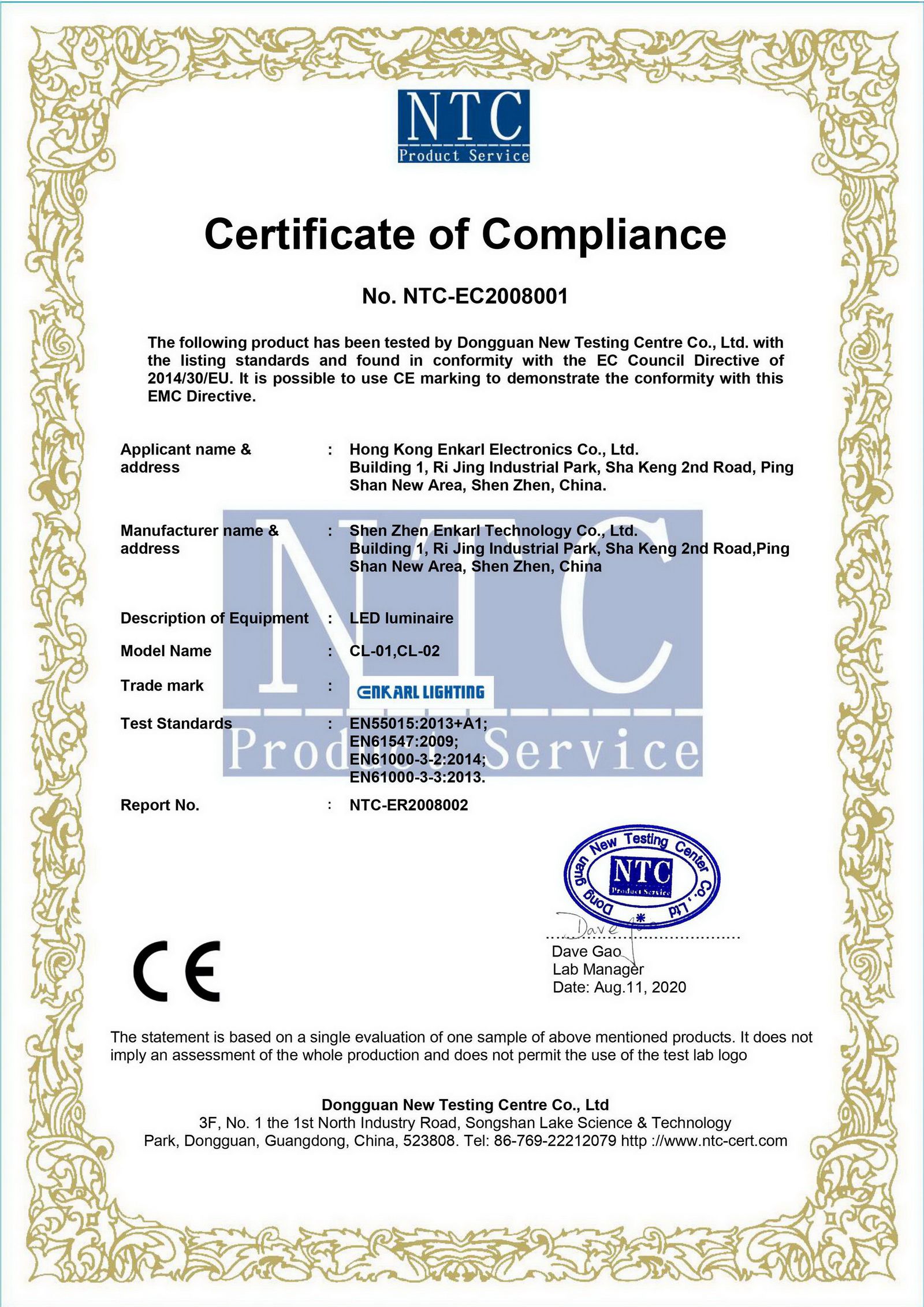 In compliance with stringent test standards, all Enkarl’s products are tested and certificated by CNAS / CRM / A2LA / NVLAP approved lab. Test contents include photometry (LM79 / LM80), thermal management (TM21), performance, blue light hazard, electrical and electromagnetic compatibility, vibration, water-proof, impact resistance.