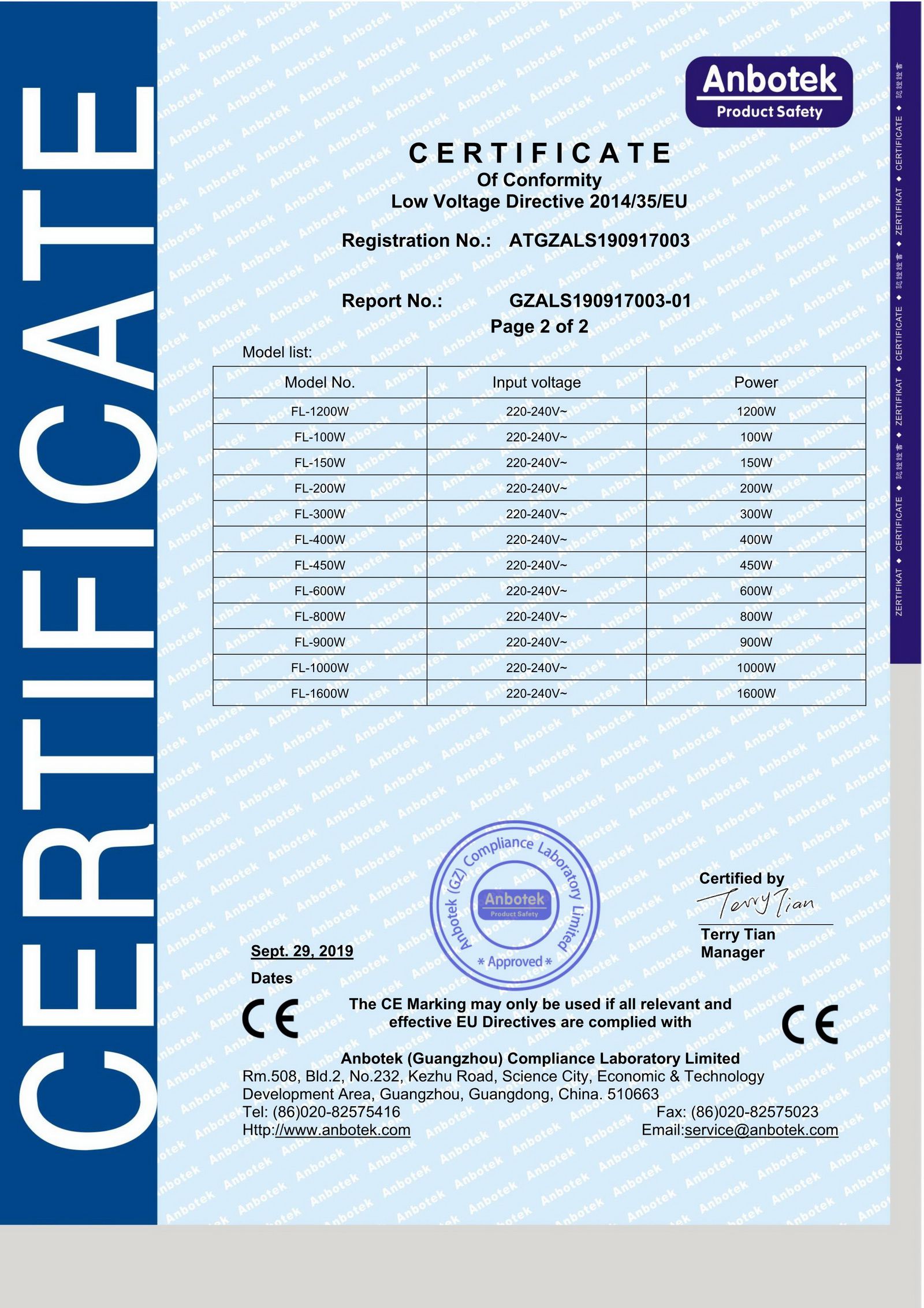 CERTIFICATIONS: CE, RoHS, ISO9001, FCC
